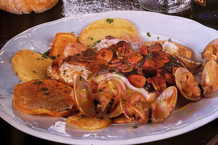 Recetas de cocina | Asturias | Revuelto de espinacas y marisco Ingredientes: 2 manojos de espinacas cocidas; 12 almejas; 12 gambas; 4 huevos; aceite, sal, ajo, guindilla. Preparación: Cuecen las espinacas en agua con sal y caldo de ave. Aparte, en sartén, se saltean las almejas y las gambas con ajo y un